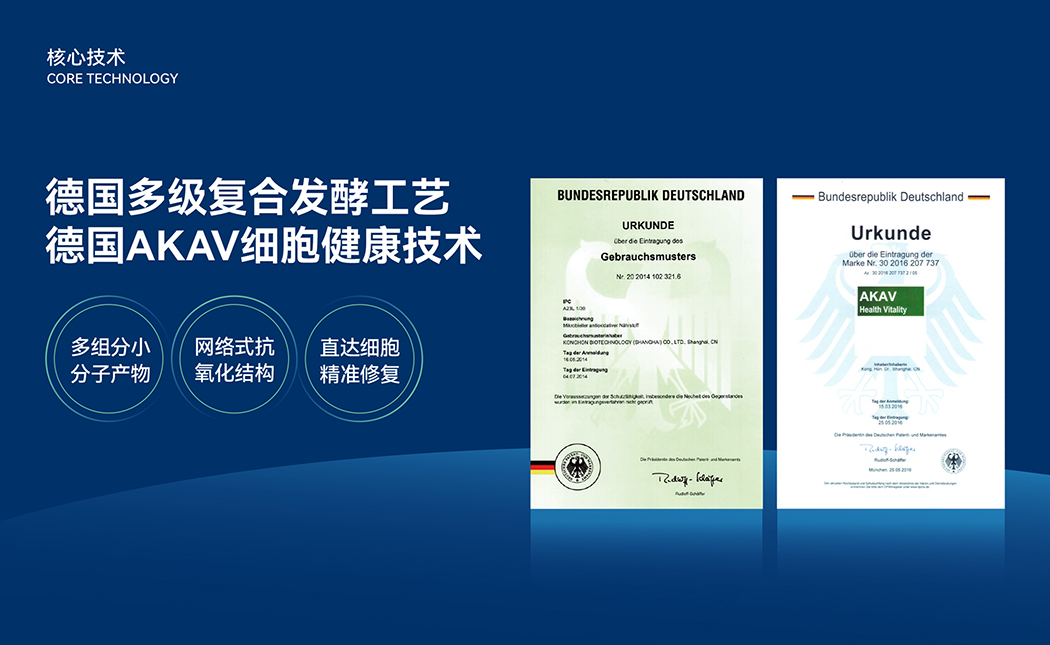 技術(shù)優(yōu)勢:兩大核心專利技術(shù)「德國AKAV細(xì)胞健康技術(shù)」和「德國多級復(fù)合發(fā)酵工藝」;