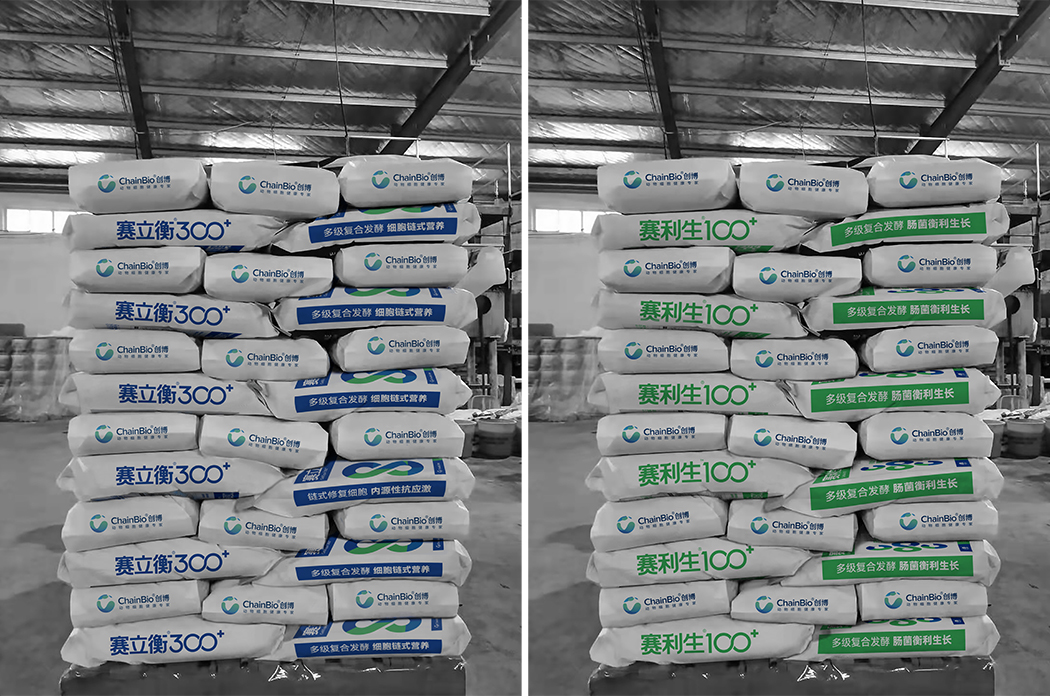我們了解到飼料線產(chǎn)品在銷售推廣時,現(xiàn)場并無包裝實(shí)物,多以宣傳物料上的展現(xiàn)為主,其包裝的核心視覺接觸點(diǎn)在于倉儲及運(yùn)輸過程中。