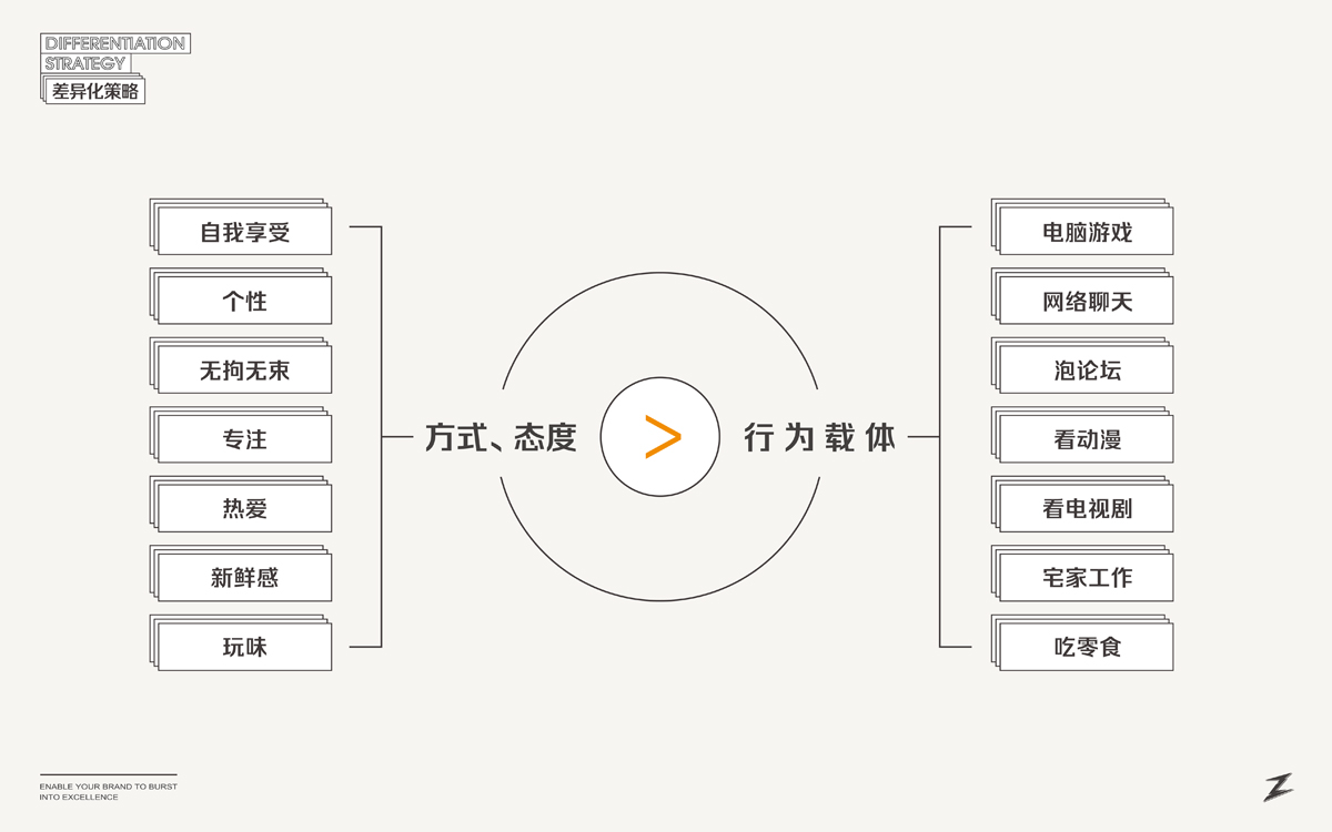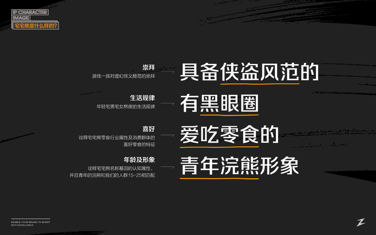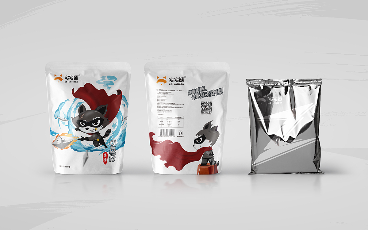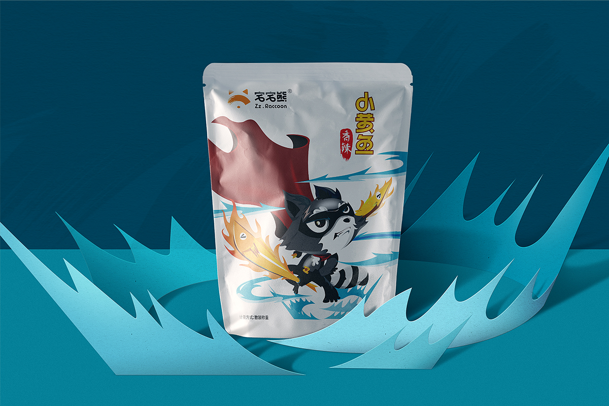 宅宅熊,在于一個(gè)“宅”字。我們通過(guò)精細(xì)化人群定位,以游戲直播、新媒體推廣渠道為主的差異化媒介,塑造了一只玩味、酷帥、俠義的浣熊IP,結(jié)合動(dòng)漫游戲相關(guān)的IP角色植入到系列包裝視覺(jué)中,與目標(biāo)消費(fèi)群形成情感共鳴,成為互聯(lián)網(wǎng)休閑食品市場(chǎng)的新興寵兒。。