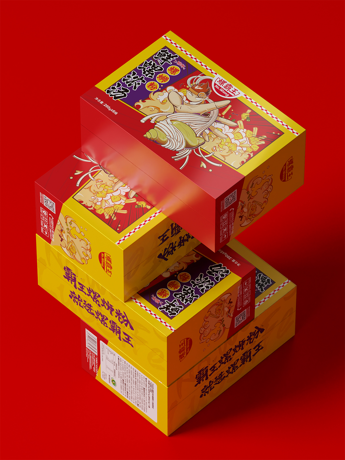 以清晰化、系統(tǒng)化、年輕化的產(chǎn)品形象價值搶占消費者心智。通過產(chǎn)品系列化升級,助力螺霸王建立屬于霸王螺螄粉獨有的利益認知+視覺資產(chǎn)。